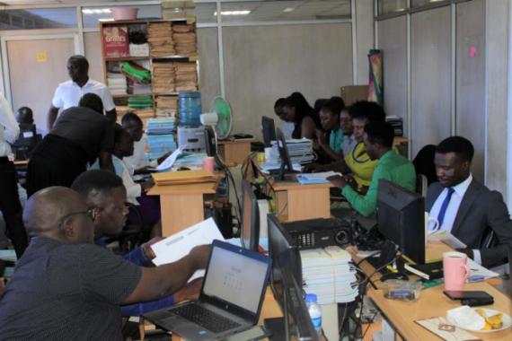 Uganda SEACMEQ team conducting hands on data capturing during capacity building excesise.